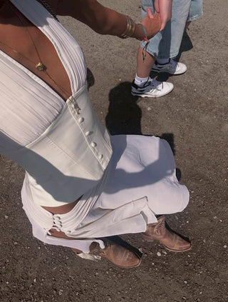 Diana is a low waist midi skirt essential. A classic nineties shape remixed with a daring high side slits and cut. Pair her with our Elizabeth, Bella or Sophie Top.